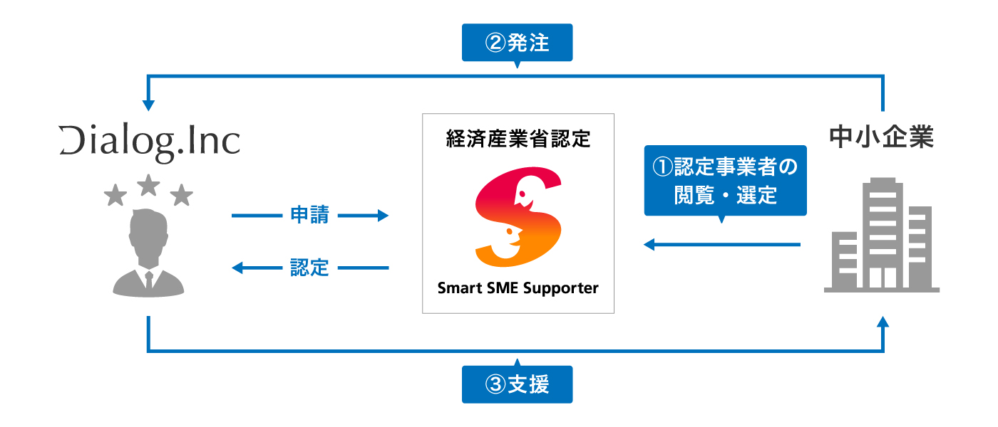 このたび、株式会社ダイアログは、経済産業省 中小企業庁が推進する「スマートSMEサポーター(認定情報処理支援機関)」に認定されましたので、お知らせいたします。